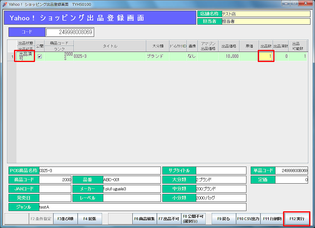 処理メニュー:「Yahoo!ショッピング出品登録」を開きます。