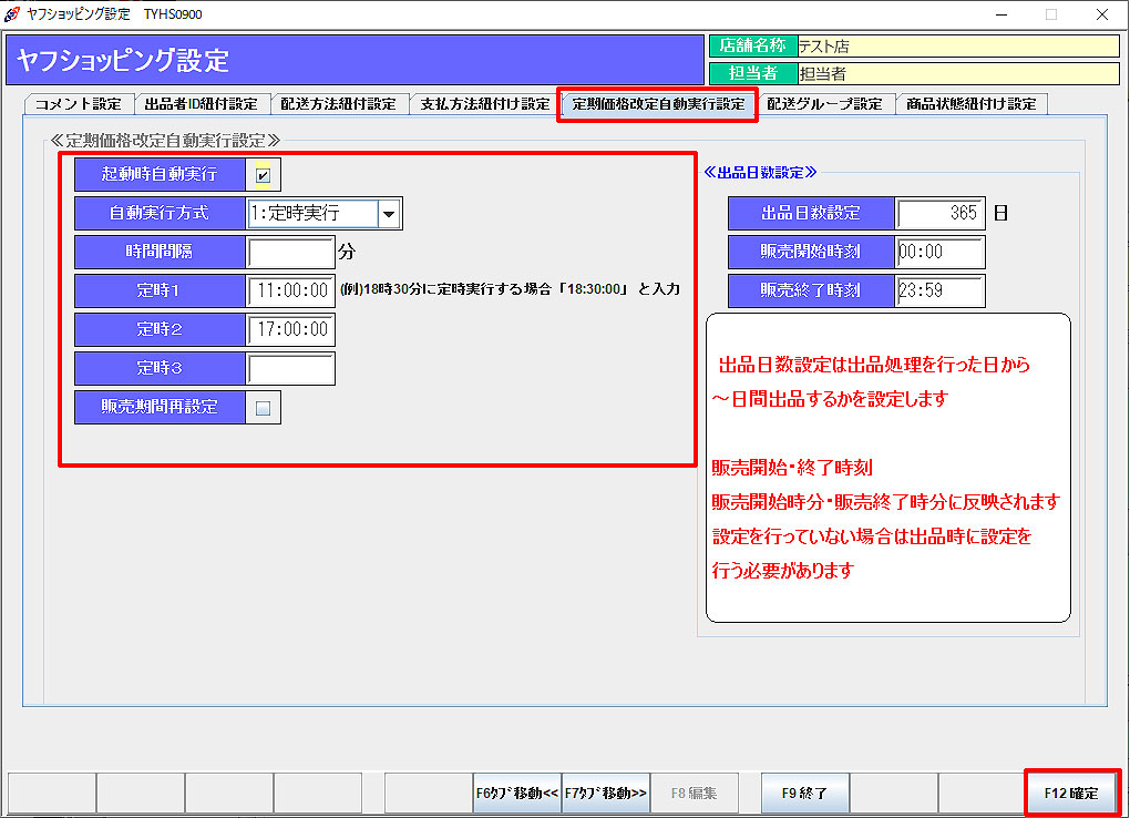 Yahoo!ショッピング出品登録を確定した日より上記「1.」~「3.」の設定に従って自動価格改定を実行します。