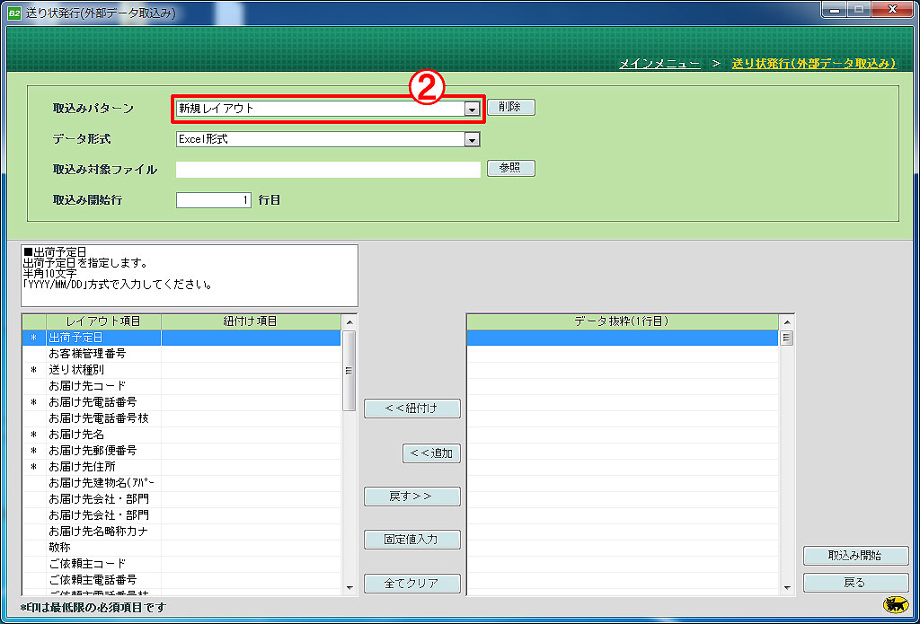 ② データの取込みパターンを選択します。