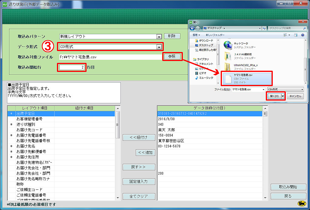3.ヤマトB2から出力した出荷データをタロスに取り込む