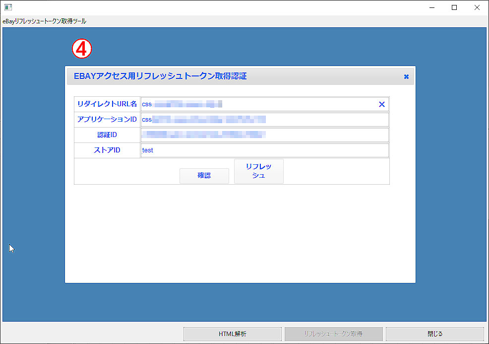 ④ 「eBayリフレッシュトークン取得ツール」画面が開きます。