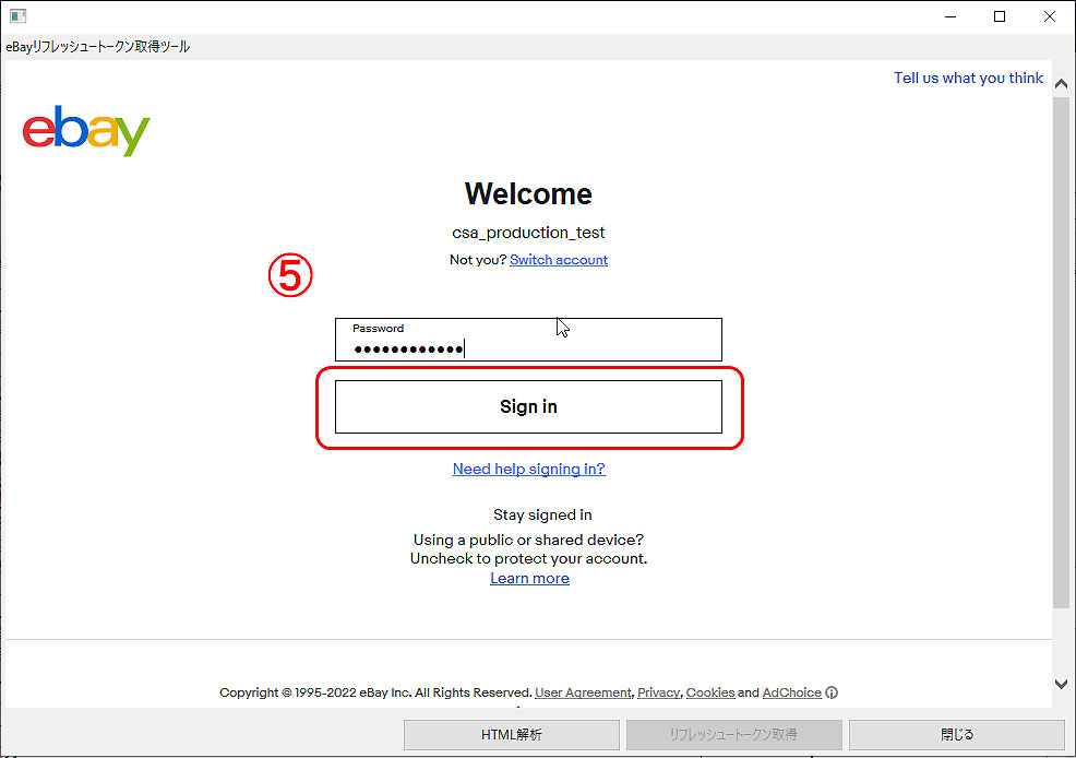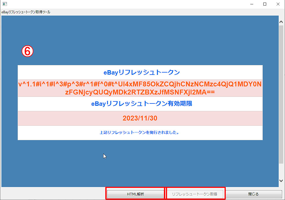 ⑥ 「eBayリフレッシュトークン」が発行されます。