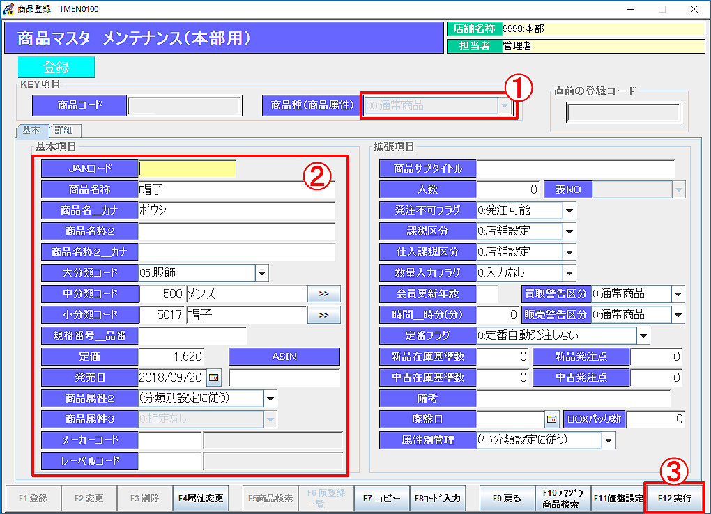 1.商品マスタを登録する (まず、本部タロスで設定を行います)