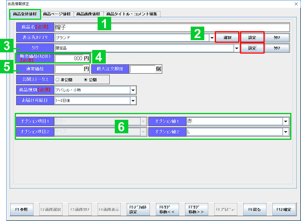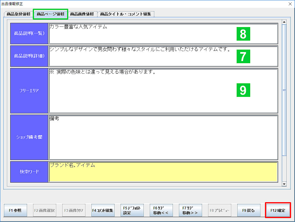③ 「F12確定」で登録を確定し、出品情報修正画面に戻ります。
