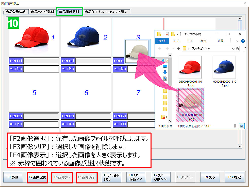 番号 この「商品画像」に登録した画像の1番目がメインイメージとしてフロント側の商品詳細ページに大きく表示され、