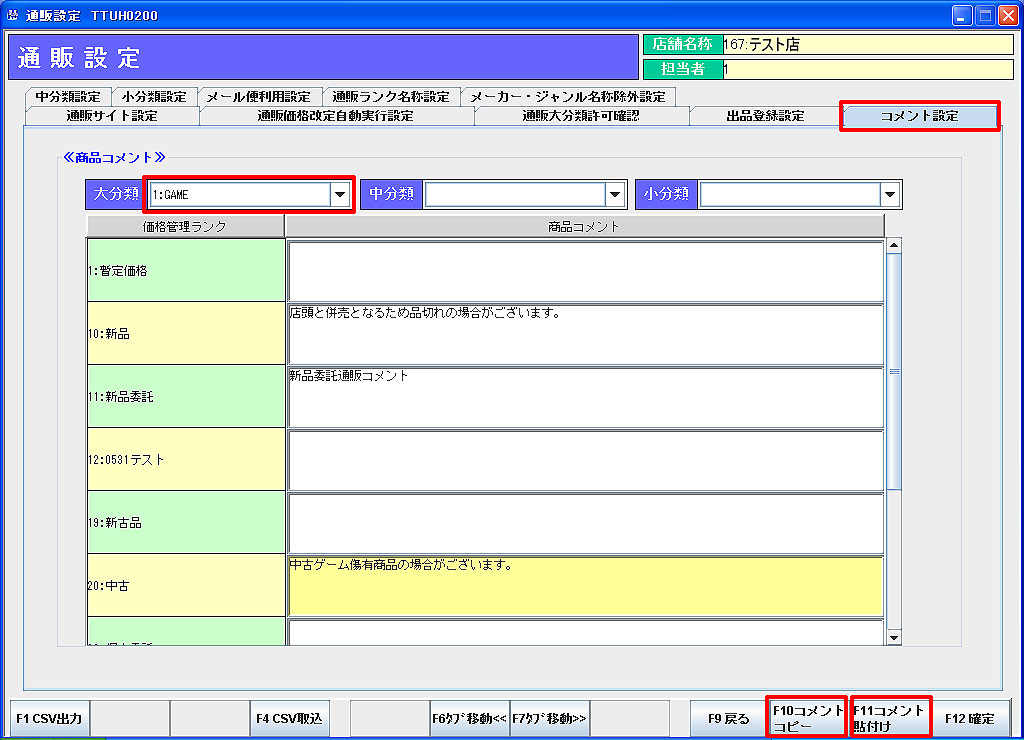 価格管理ランクに対応する商品コメントを入力します。