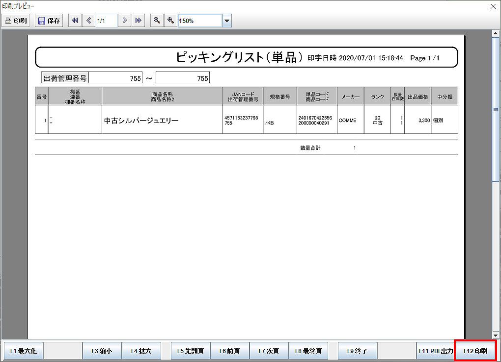 2.条件に当てはまる出荷指示商品(ピッキングリスト印刷