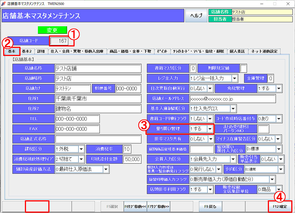 1.店舗基本マスタメンテナンスで量り買い管理を有効にします。