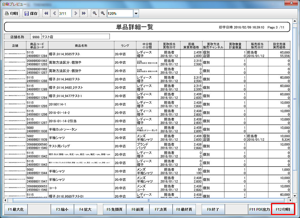 【単品詳細一覧印刷プレビュー】