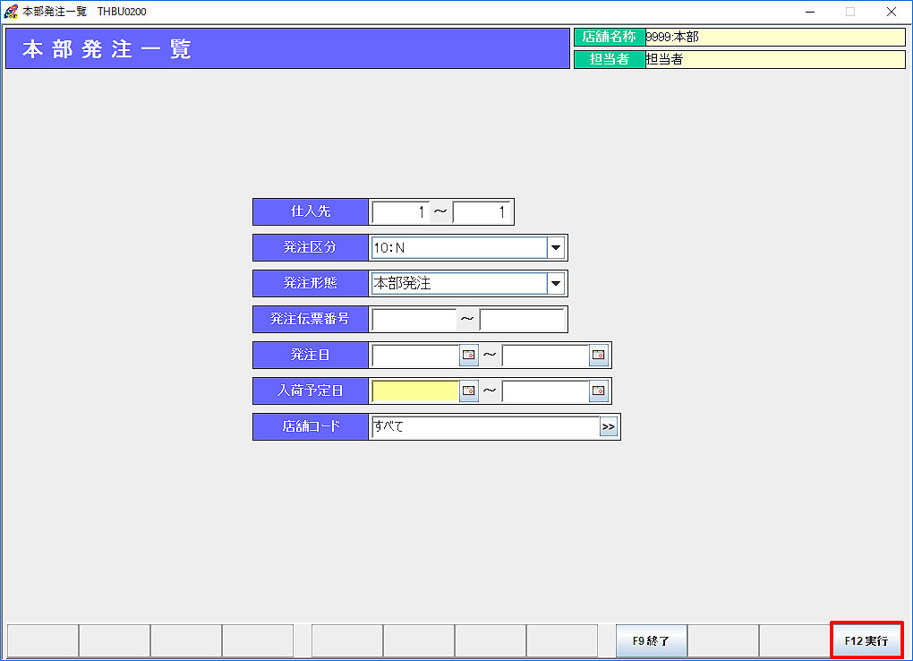 「F10CSV出力」:本部発注一覧をCSVファイルで保存します。