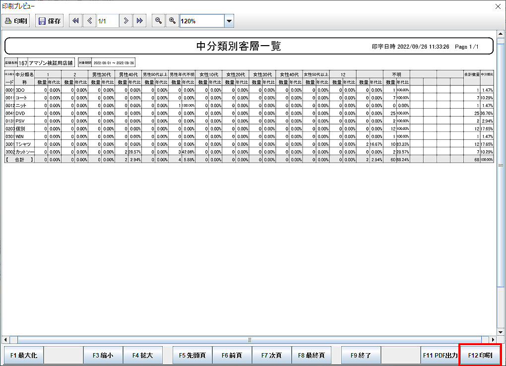 3.「F12実行」で条件に当てはまる客層実績一覧が表示されます。