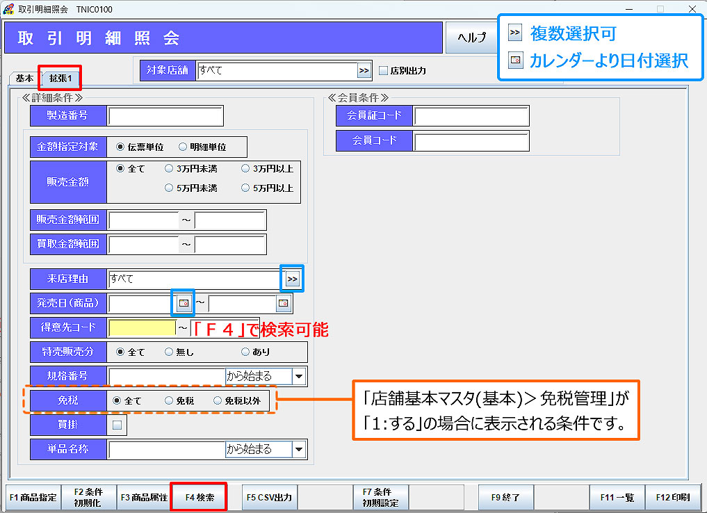 「F2条件初期化」:検索条件を初期状態に戻します。