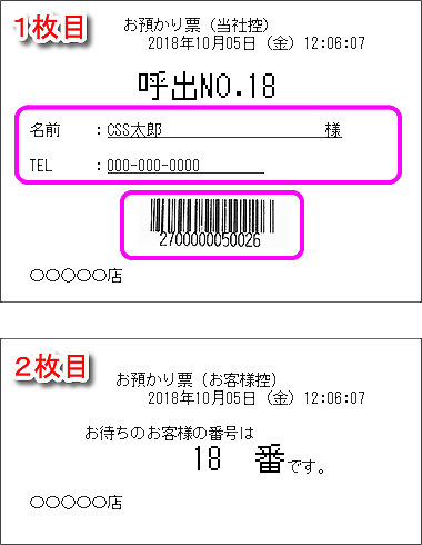 以下、整理券発行機能のレシートを「受付票」と呼びます。
