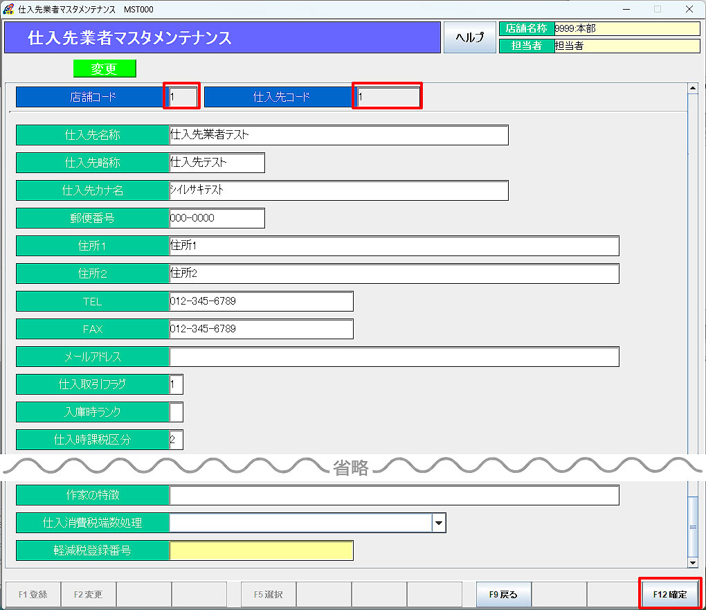 注)この処理により店舗コードすべての仕入先情報が更新されますのでご注意ください。