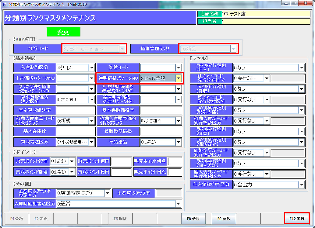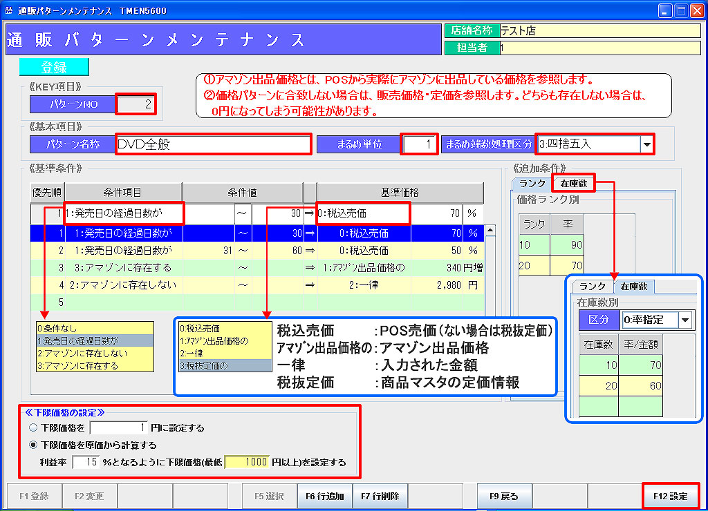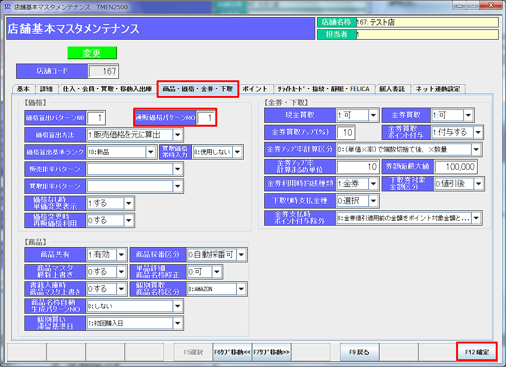通販価格パターンNO欄で、該当するパターンNOを選択します。