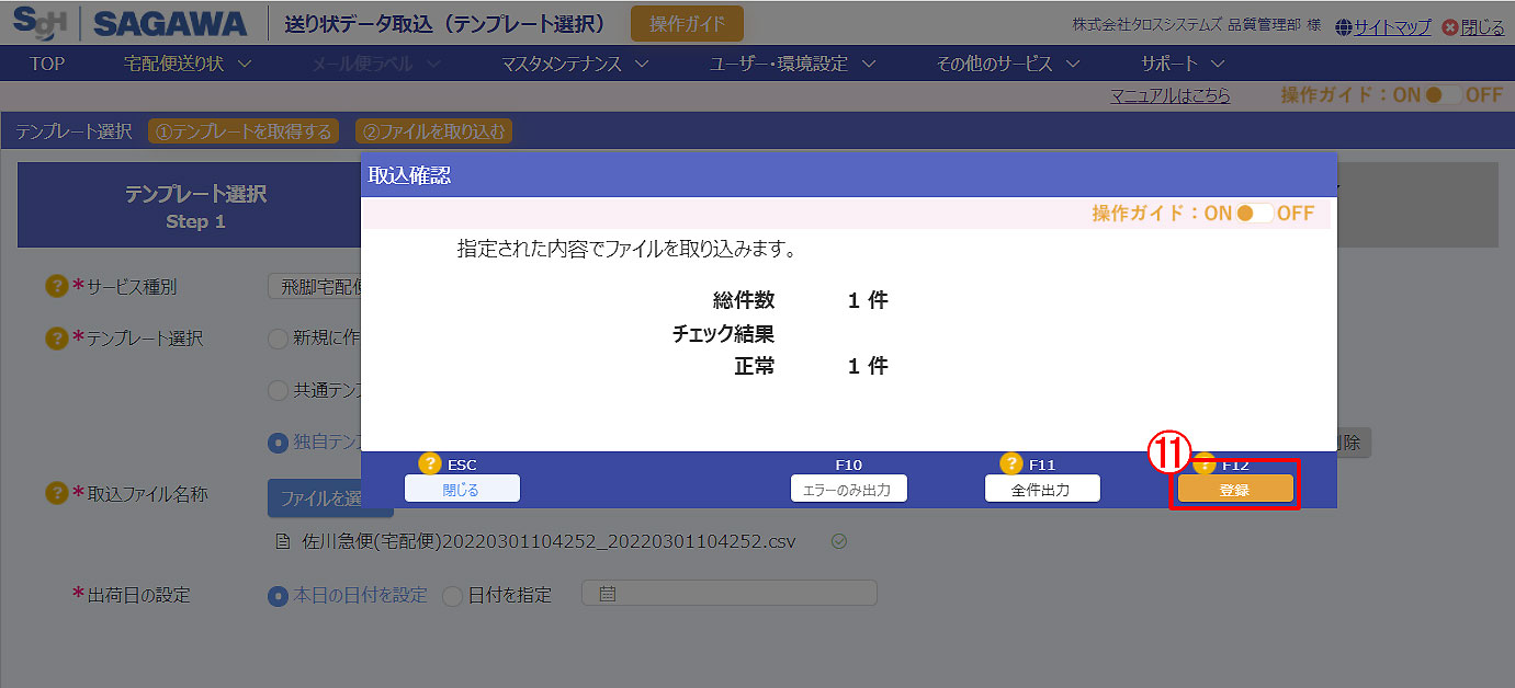 ⑪ 取込結果を確認し、「登録」をクリックします。