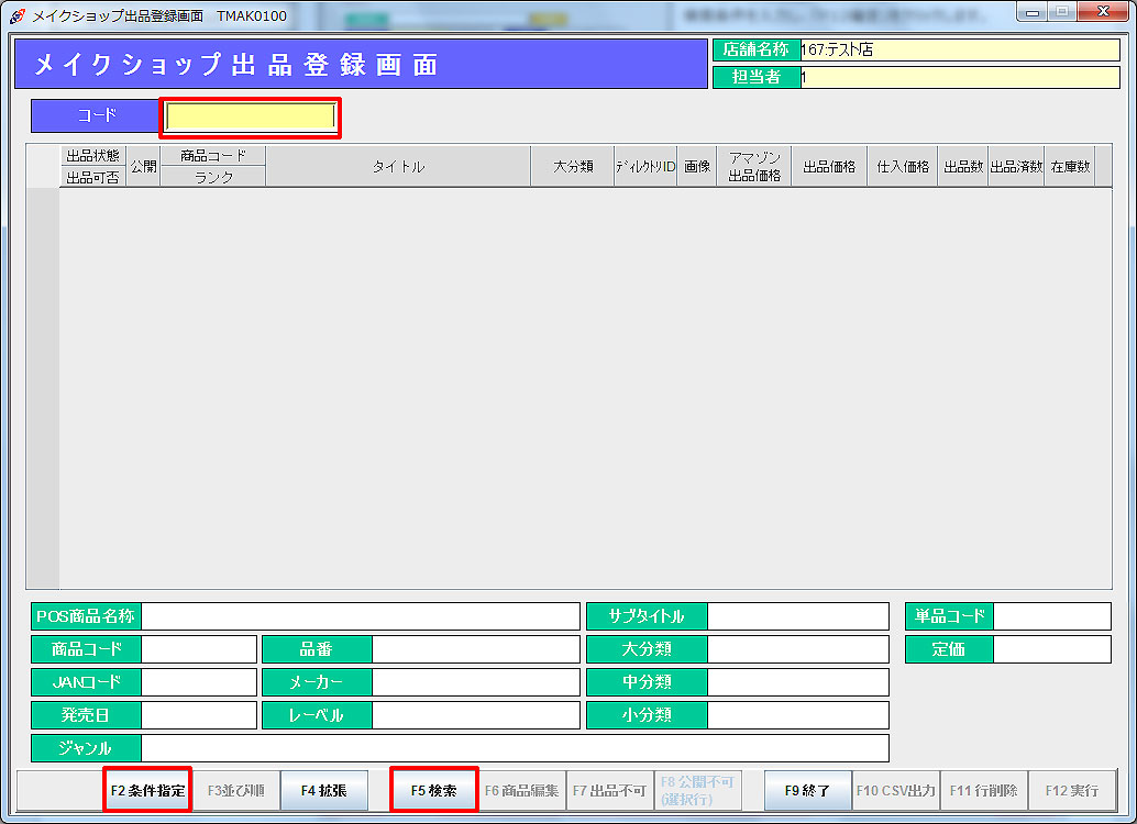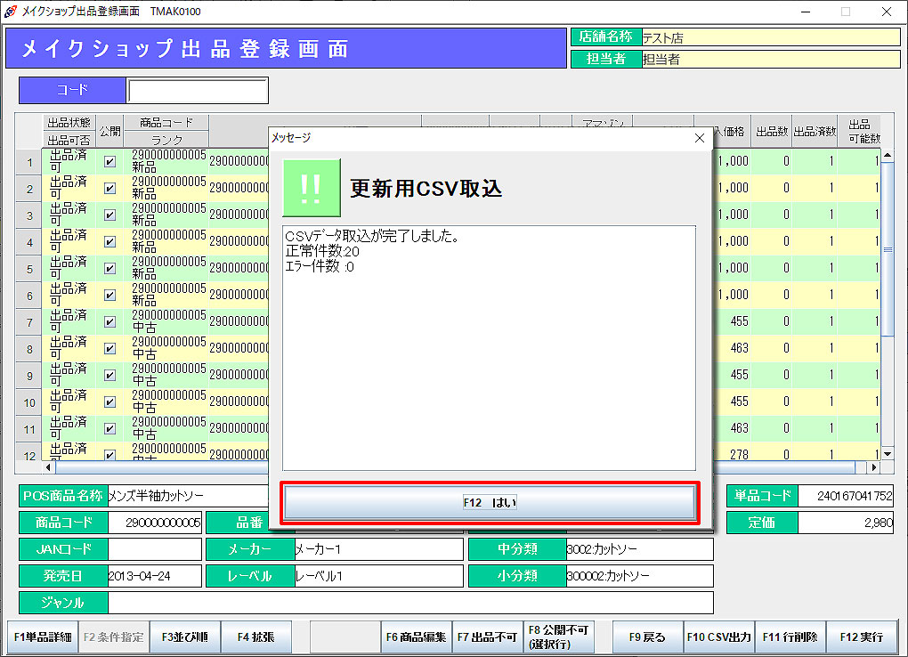 MakeShop更新用CSV取込 2.出品情報を編集、もしくは編集する必要がなければ、そのまま「F12実行」で出品します。