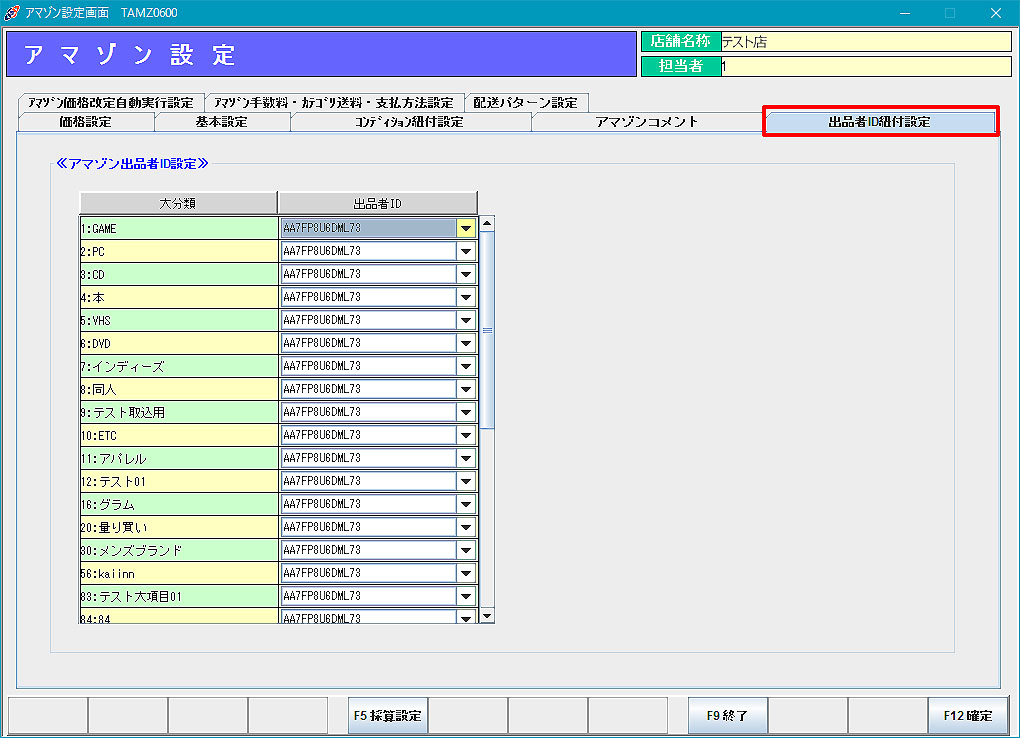 出品者ID紐付設定:タロスの大分類と出品者IDを紐付けます。