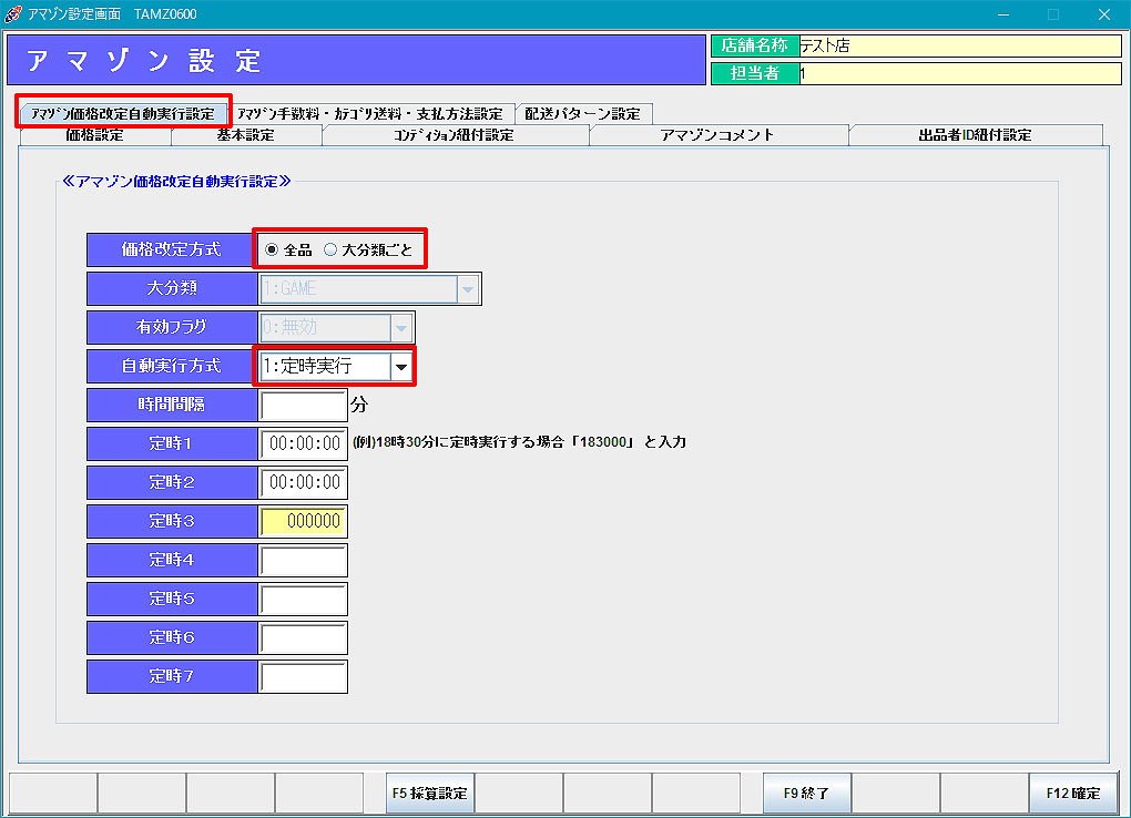 アマゾン出品者ID設定、アマゾンコンディション設定、アマゾンコメント設定、アマゾン価格改定自動実行設定、