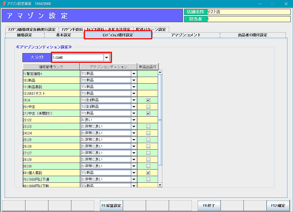 コンディション紐付設定:タロスの価格管理ランクとアマゾンコンディションを紐付けます。