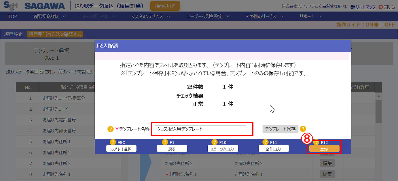 ⑧ 「テンプレート名称」を入力し、「登録」をクリックします。