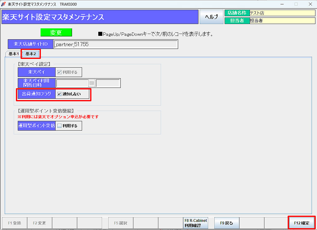 初期設定では「出荷通知フラグ」は「通知しない」に設定されています。
