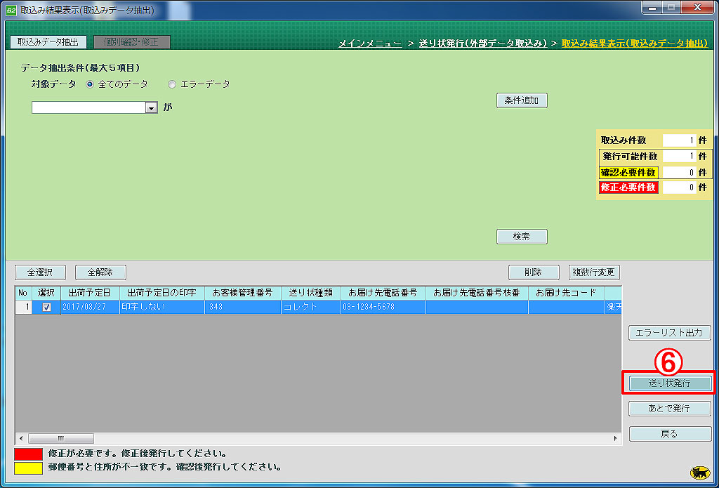 ⑥ データを取り込むと、取込みデータ抽出画面に遷移します。