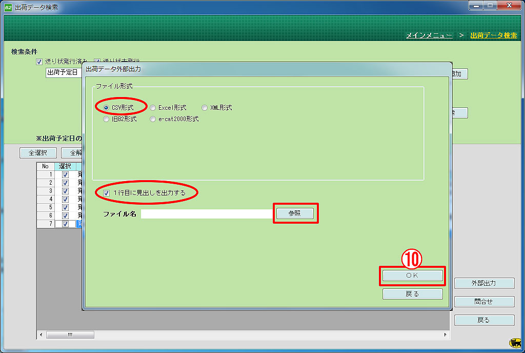 出荷データをCSVファイル出力します。