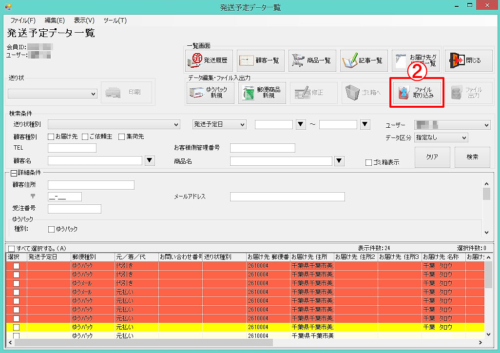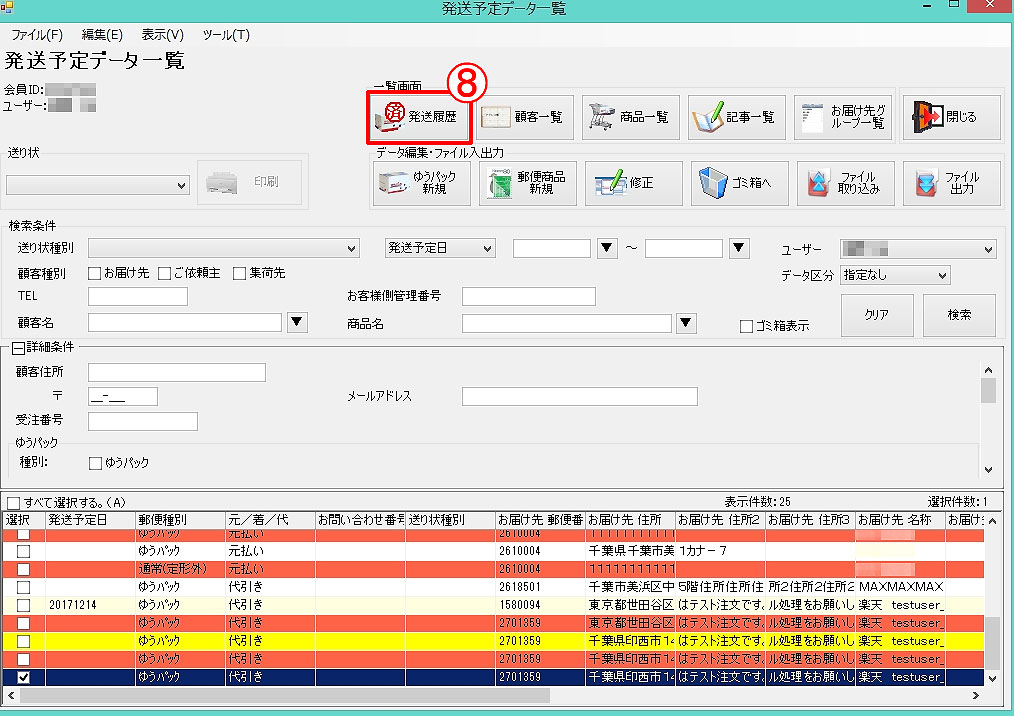 ⑥ 発送予定データ一覧に取り込んだ発送予定データが、表示されます。