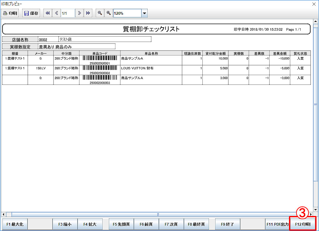 更新終了後、再度「F12印刷」をクリックして棚卸チェックリストを印刷しておいてください。