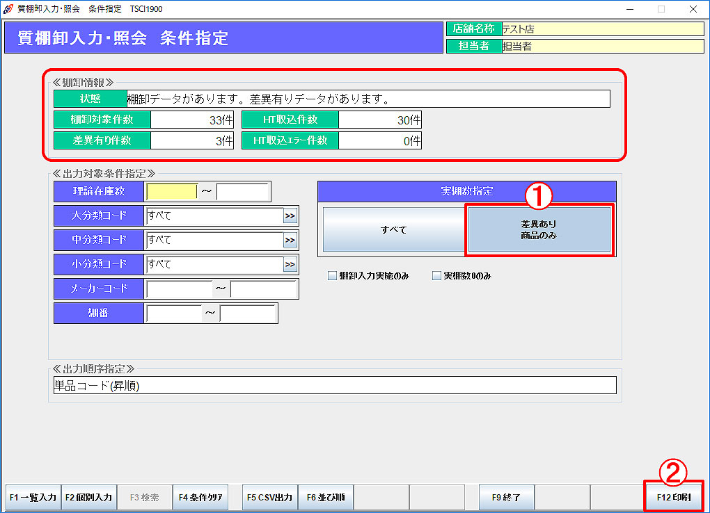 「F12印刷」をクリックして棚卸チェックリストを印刷します。