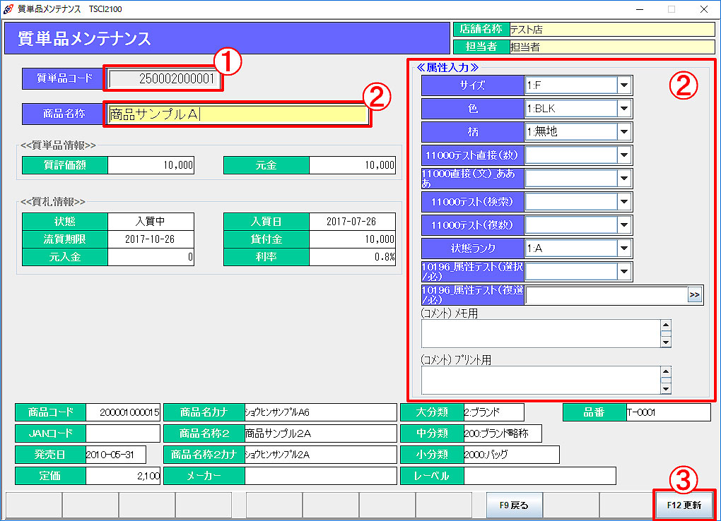 ② 「商品名称」「属性」の編集が可能です。