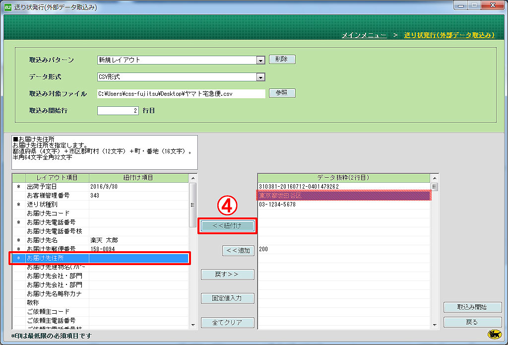 注)送り状CSVは「全般設定の送り状CSV取込設定」が正しく設定されていないと取り込めませんのでご注意ください。