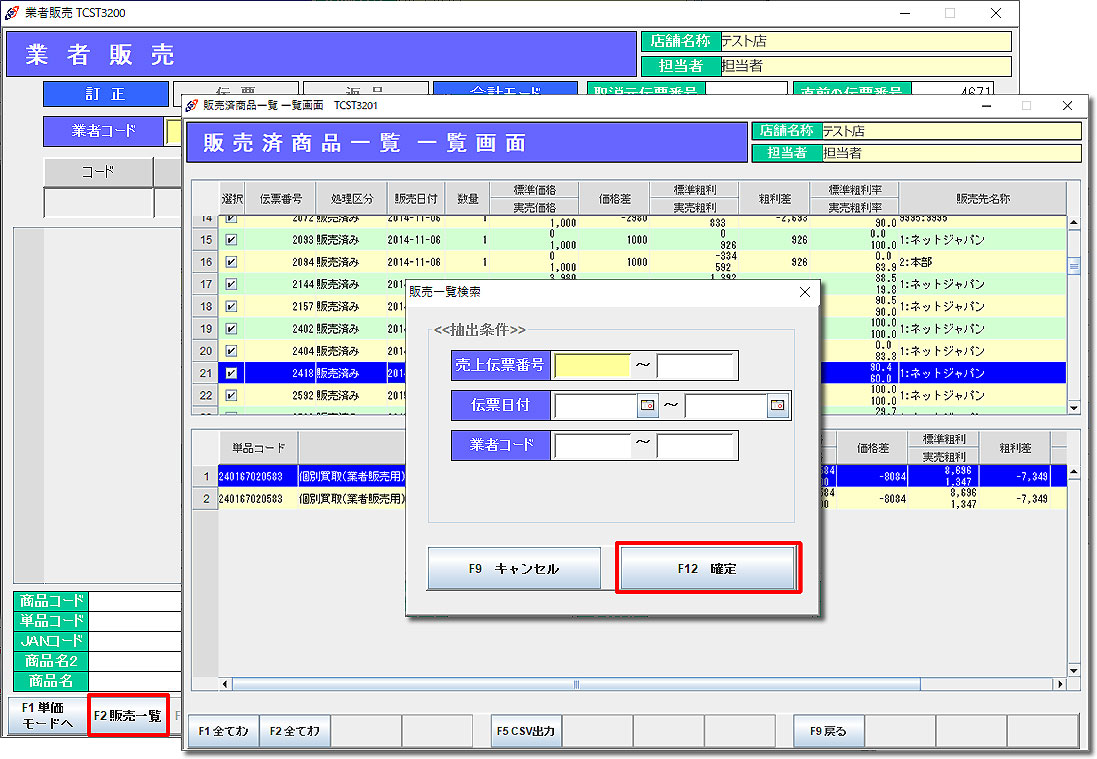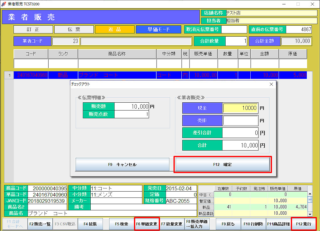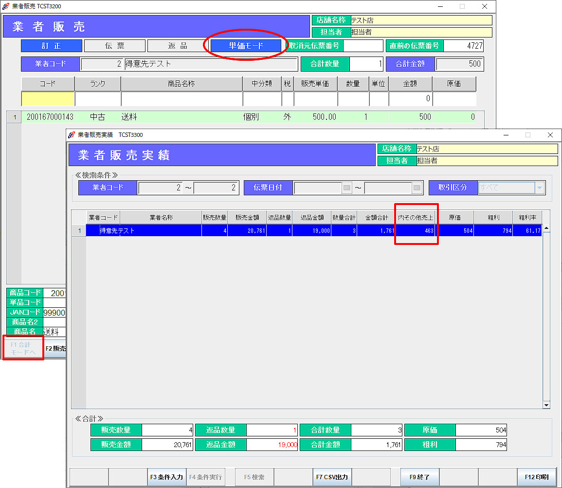 ※ 業者販売入力モードは、「F1」より切り替えが可能です。