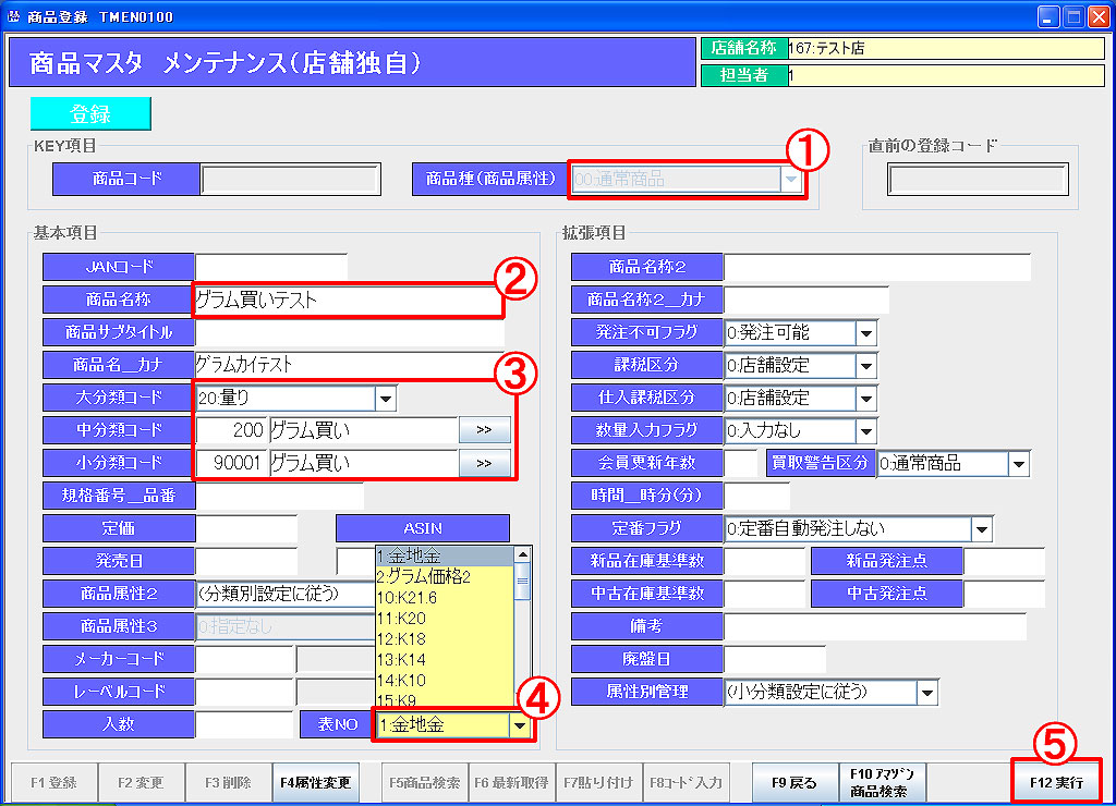 ⑤ 「F12実行」で登録を確定すると、商品コードは自動で振られます。