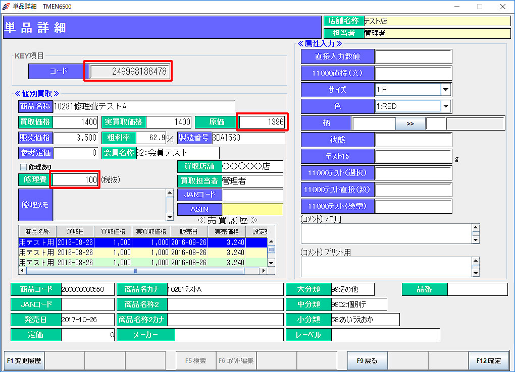 個別品の買取時に発生した修理費用を仕入れとして計上し、原価に反映する事ができます。