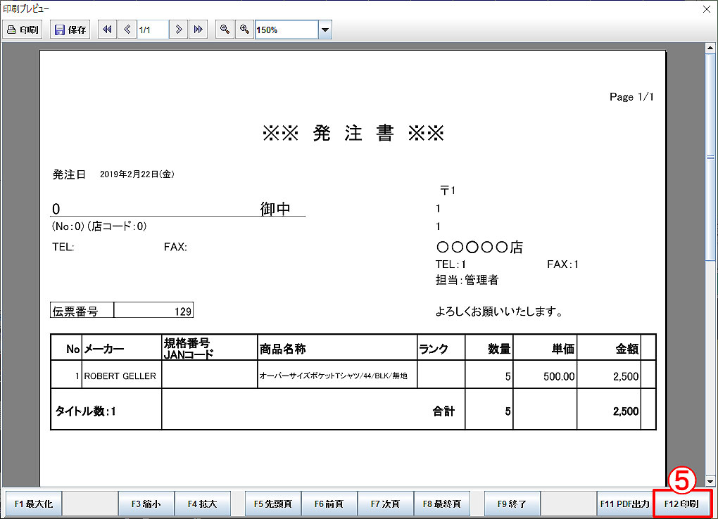 「F12はい」で発注書印刷プレビューが表示されます。