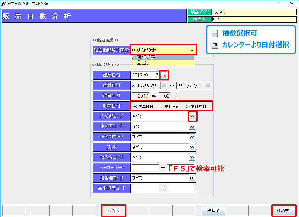 ※ 滞留日数の起算日は、品出し機能を利用している店舗は「品出し日」、利用していない店舗は店舗基本マスタの「個別買い滞留基準日」です。