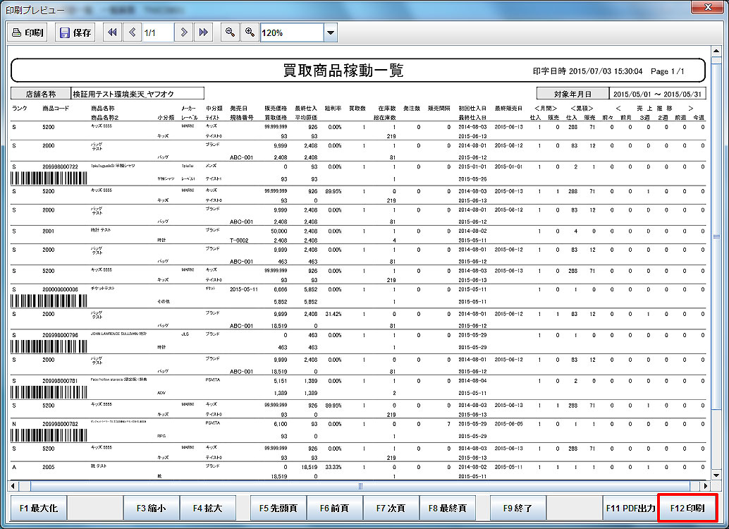 【買取商品稼動一覧印刷プレビュー】