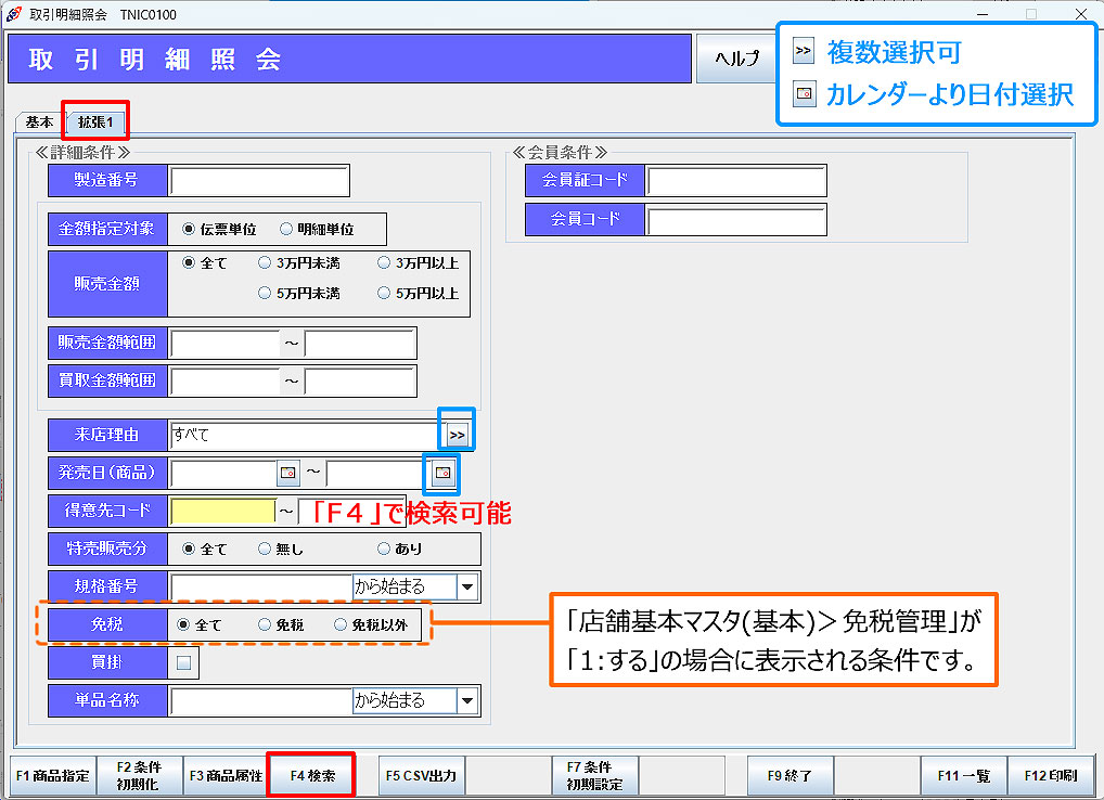 「F2条件初期化」:検索条件を初期状態に戻します。