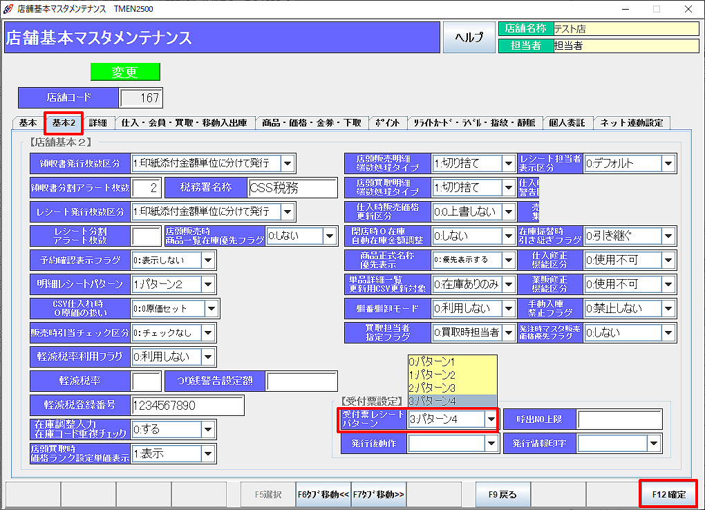 店舗設定>店舗基本マスタ>基本2タブを開きます。