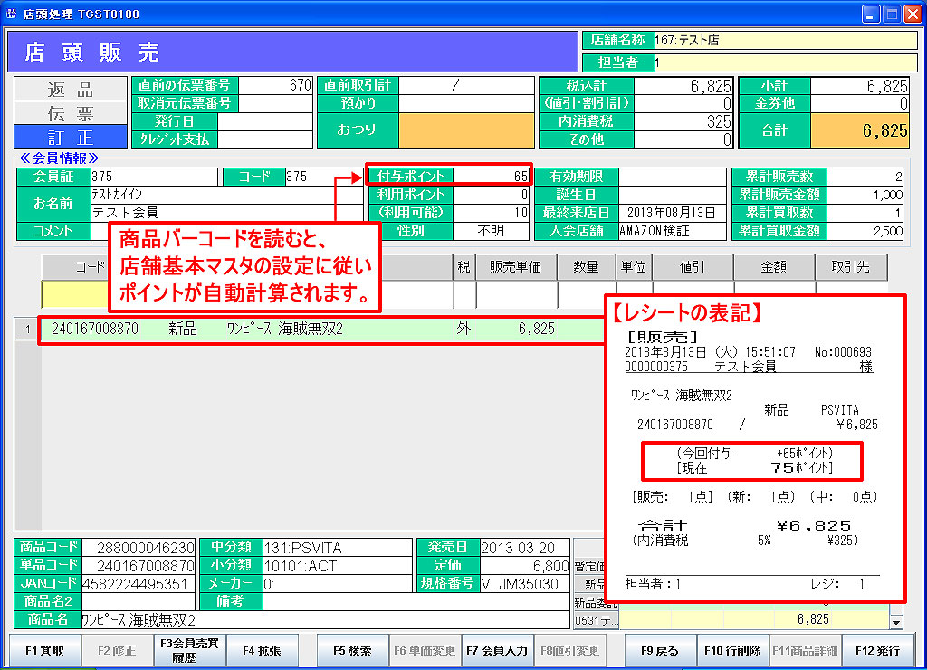 ポイント管理を行うには、会員登録、店舗基本マスタのポイント設定が必要です。