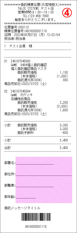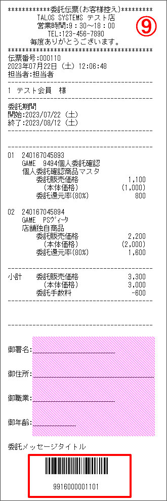 ⑨ 個人委託内容が記載されたレシートが出力されます。
