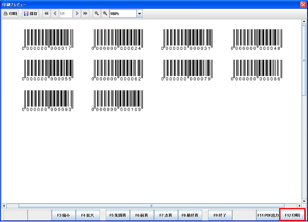 ② 「F12印刷」でバーコードをA4用紙で印刷します。