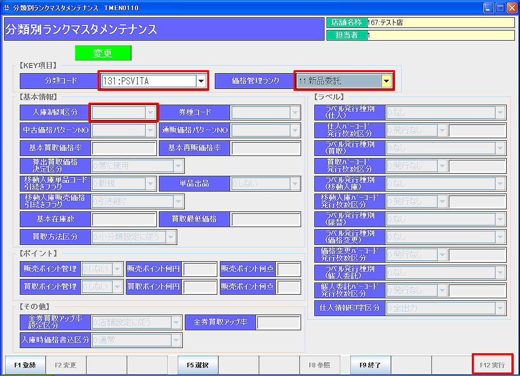 ④「F12実行」で登録を確定します。