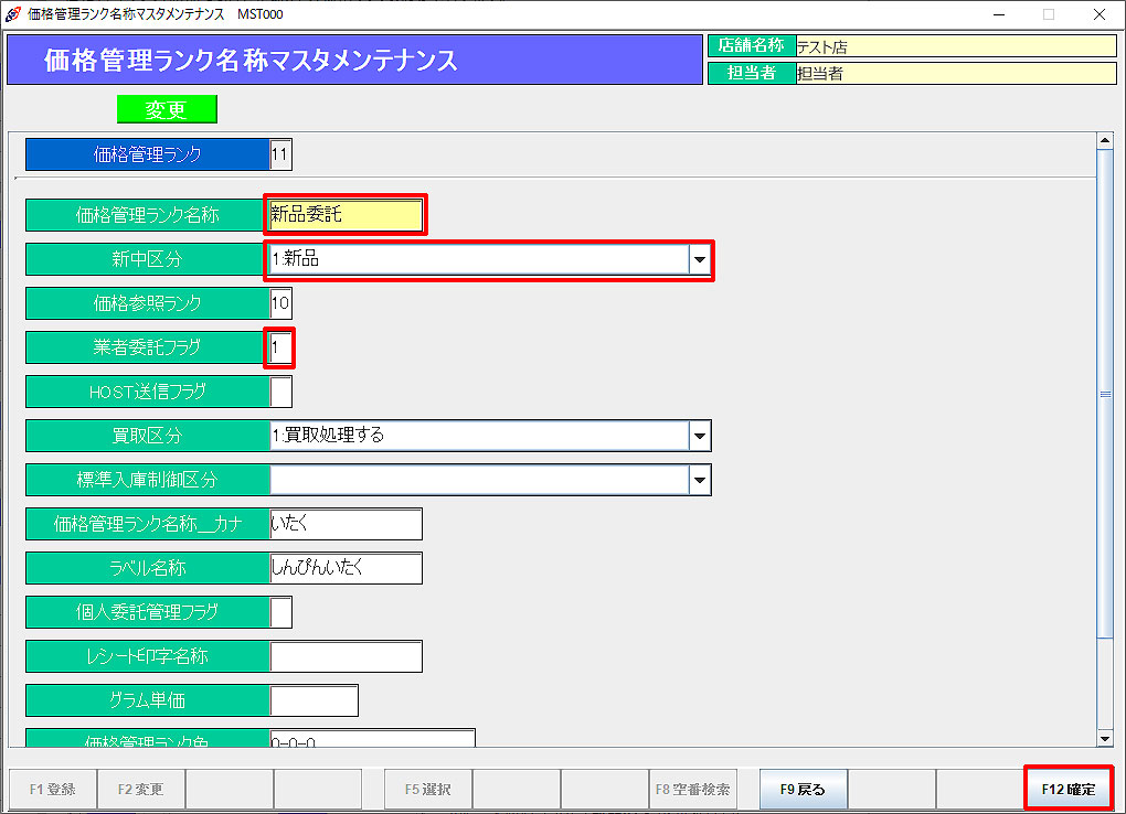 F12確定」で登録を確定します。