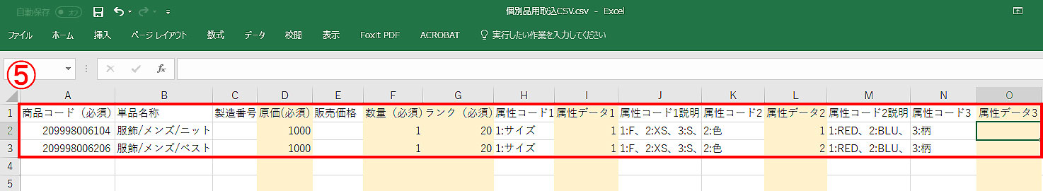 ※ 日常的に同じ商品の仕入を行う場合には、ひな形となるCSVを保持しておくことで、手順②~③の処理は不要になります。