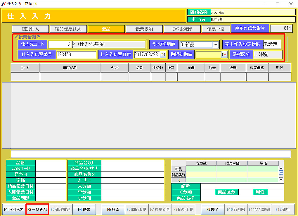 グロス・担当者別グロスでは一括返品処理はご利用できません。ご注意ください。