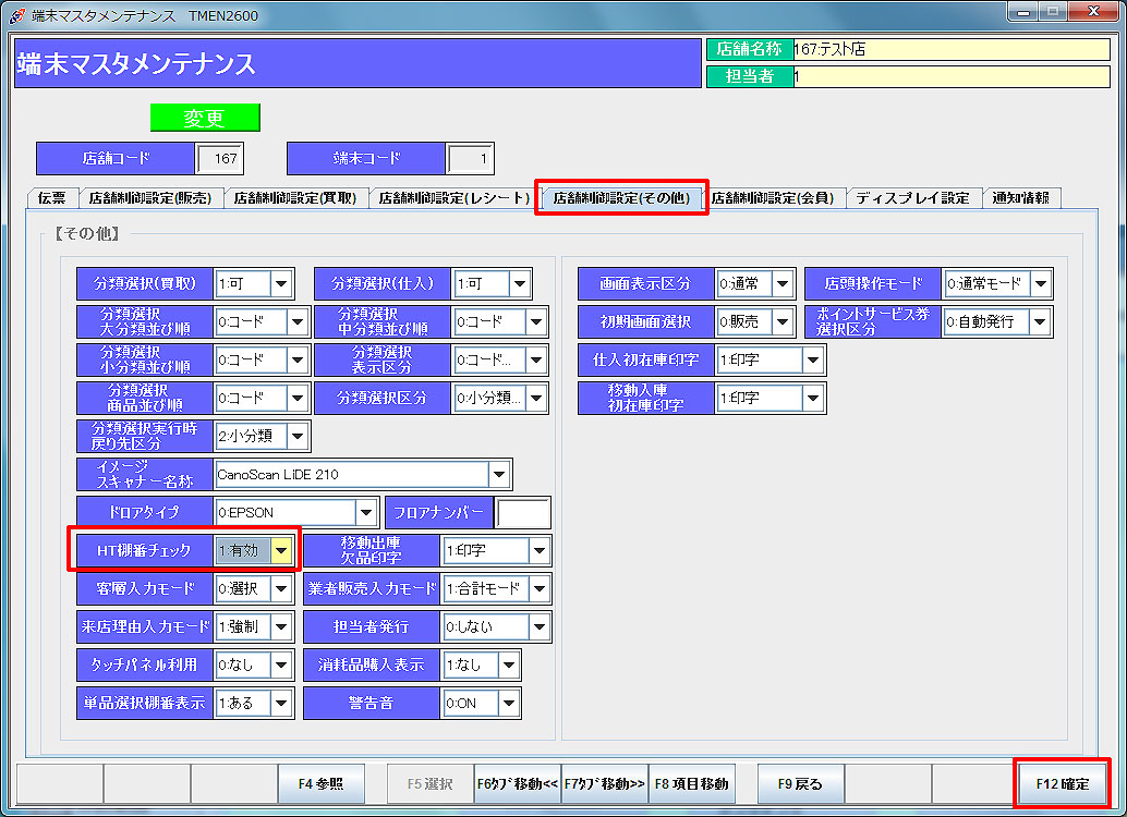 4.端末マスタのHT棚番チェックを「有効」に設定します。