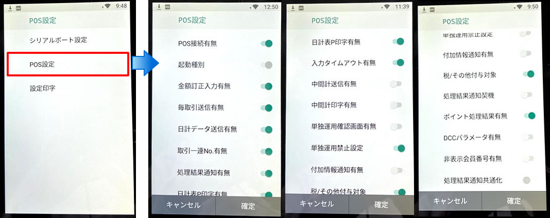 「POS設定」は、決済端末出荷時に、運用に合わせて設定済です。